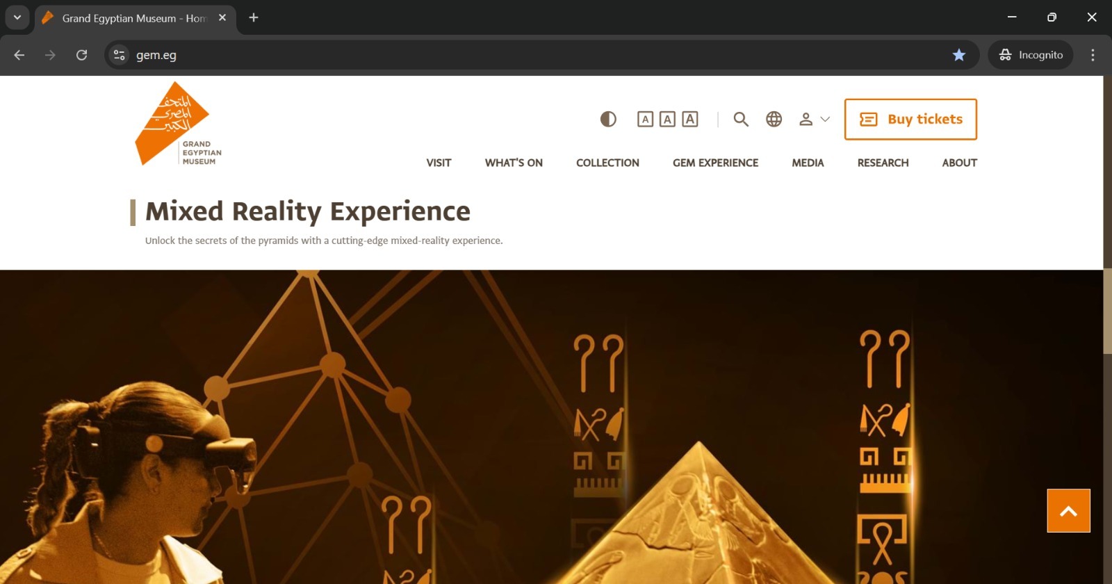 في إطار الاستعدادات المكثفة تمهيدًا للافتتاح المنتظر للمتحف المصري الكبير يوم 1 نوفمبر 2025 أطلقت وزارة السياحة والآثار الموقع الإلكتروني الرسمي الجديد للمتحف والذي يمثل بوابة رقمية متكاملة تتيح للزائرين التعرف على المتحف ورؤيته ورسـالته وتاريخ إنشائه وشركائه ومجلس أمنائه إلى جانب كل ما يقدمه من فعاليات وخدمات وتجارب فريدة من نوعها.