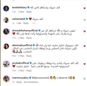 أما الفنان أحمد التهامي فعلق قائلًا: “مليون مبروك يا محترم.. والله تستاهل كل خير وربنا يقدرك على المسؤولية، وأنت قدها بإذن الله”.