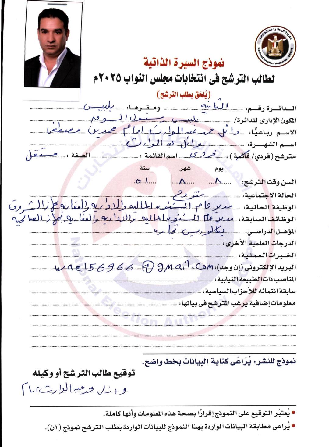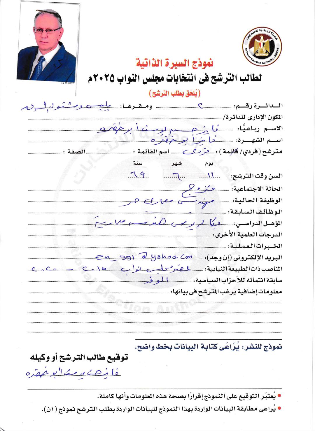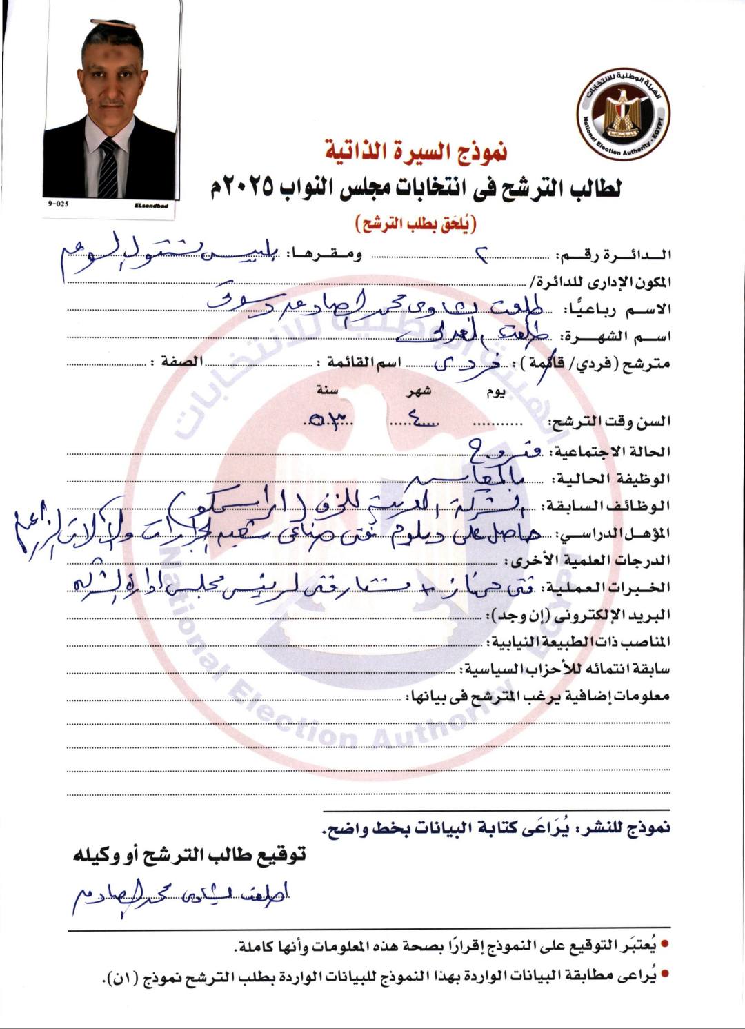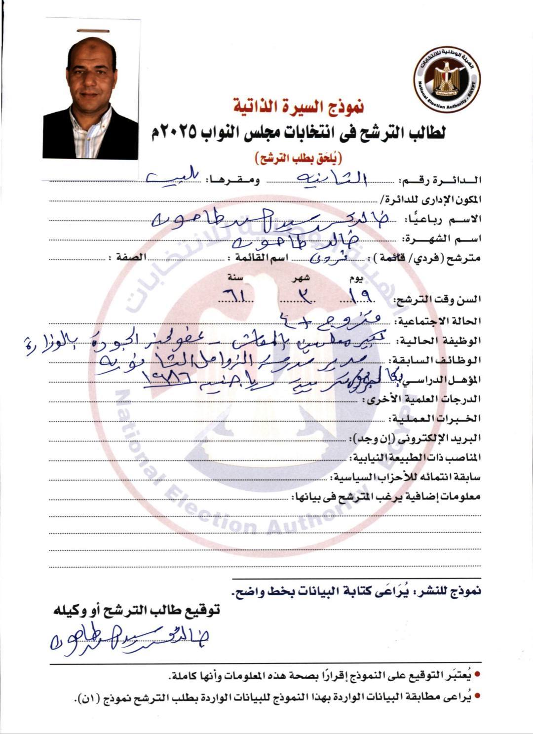 حزب الوفد المصري بمرشحه محمد الطفيسي برمز النخلة.