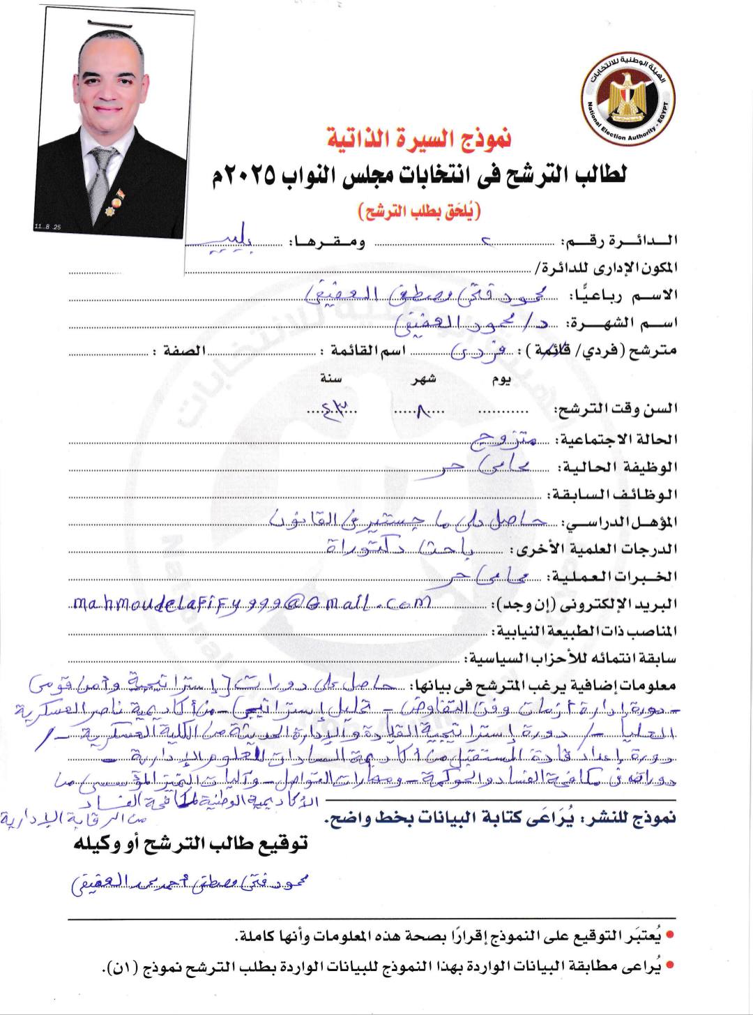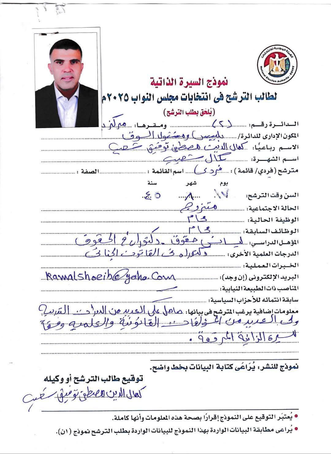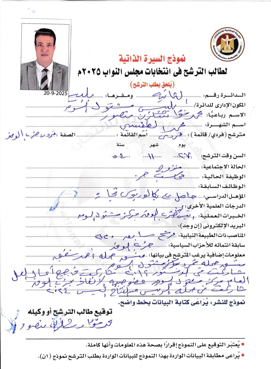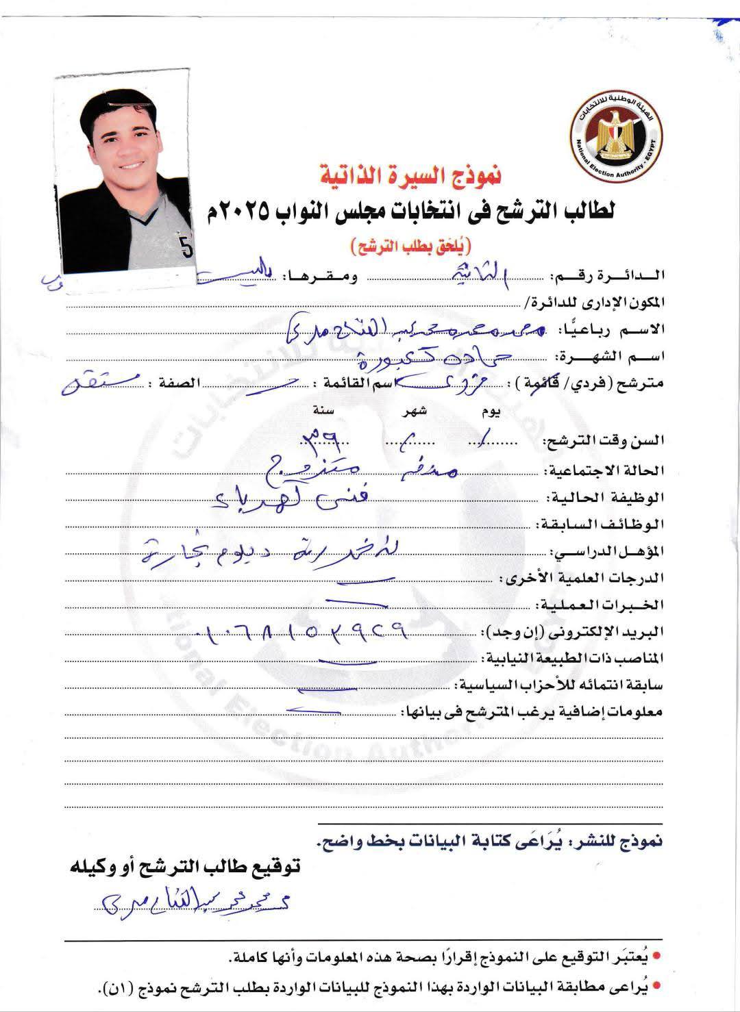 حزب الوفد المصري بمرشحه محمد الطفيسي برمز النخلة.