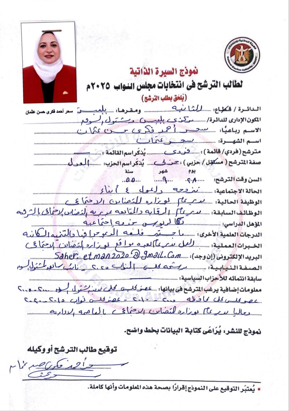 حزب العدل بمرشحته سحر عثمان برمز الحصان.