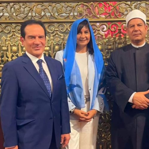 وقامت السفيرة، بصحبة الفنان محمد ثروت، بجولة داخل المسجد، مؤكدة في تعليقها تقديرها للمكان وتاريخه الروحاني الكبير لدى المصريين. كما أشارت إلى أن مصر ستظل دائمًا نموذجًا للتعايش والمحبة بين أبنائها.