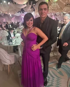 ورافقها زوجها المخرج المنفذ أحمد جمال، الذي ظهر بإطلالة كلاسيكية أنيقة مرتديًا بدلة سوداء، ليشكلا معًا ثنائيًا لفت الأنظار بعد ظهور نادر لهما سويًا في مناسبة رسمية.