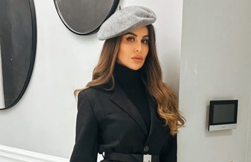 وظهرت مي سليم في الصورة بإطلالة كلاسيكية لافتة مرتظية جاكيت طويل باللون الأسود، أبرزت رشاقتها وجمالها.