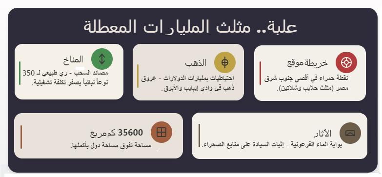 وتضع “خريطة المزايدات العالمية” مثلث (حلايب-شلاتين-علبة) ضمن النطاقات الأكثر جذباً للاستثمار الأجنبي المباشر؛ حيث تُقدّر الاحتياطيات الجيولوجية بمليارات الدولارات. هذا الثراء المعدني يفرض حتمية التحول من “تصدير الخام” أو “التنقيب العشوائي” إلى توطين صناعات تعدينية تحويلية، تضمن تعظيم القيمة المضافة وحماية الأصول السيادية للدولة.