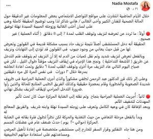 وأكدت، نقلًا عن زوجته نهلة توفيق، أن ما أُشيع حول تعرضه لنزيف حاد وتوقف القلب لفترة طويلة أثناء العملية الجراحية غير صحيح، مشددة على ضرورة تحري الدقة قبل نشر مثل هذه المعلومات الحساسة.