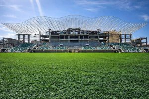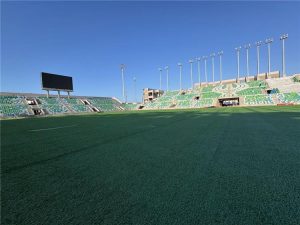 أكدت الوزارة أن أرضية الملعب تم تجهيزها باستخدام تقنية “النجيل الهجين” (Hybrid Grass)، والتي تمزج بين العشب الطبيعي والصناعي، ما يمنح الملعب قدرة أكبر على تحمل ضغط المباريات المتتالية، مع الحفاظ على جودة الأرضية لفترات طويلة.