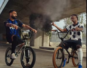 ظهر محمد صلاح خلال الإعلان في لقطات استعراضية مميزة، حيث قدم مهارات فردية برفقة فينيسيوس جونيور، قبل أن تتصاعد الأحداث إلى ذروتها بمحاولة “الملك المصري” تنفيذ ركلة حرة مباشرة.